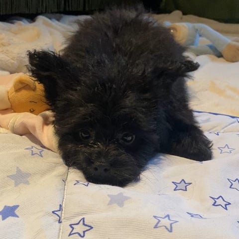 Når det gjelder stell, trenger hun at du jevnlig sjekker ørene, og renser for å unngå oppbygging av ørevoks. Ellers vanlig pelsstell og negleklipp som for de fleste hunder. Legger seg til å sove når jeg klipper neglene.