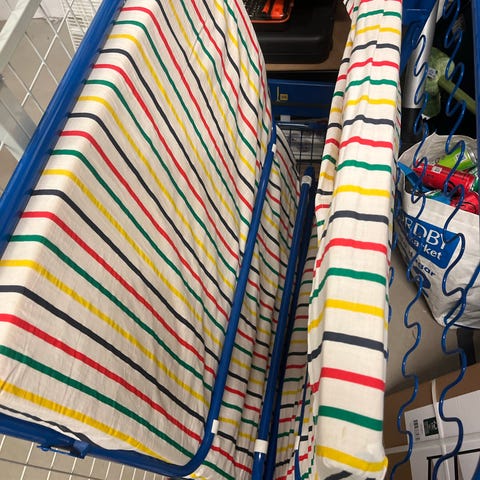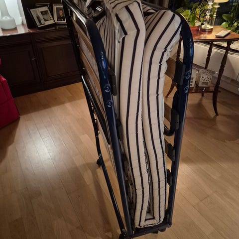 IKEA sammenleggbar gjesteseng med madrass i blå metallramme.