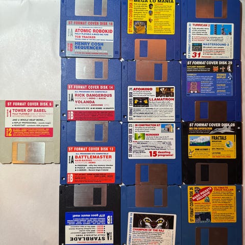 Kabel for ekstern diskettstasjon til f.eks Atari ST etc. Kabelen er original, og er 14 pin hannplugg i begge ender. Lengde målt til noe mellom 55-60cm. Kan brukes med f.eks SF 314 eller SF 354.