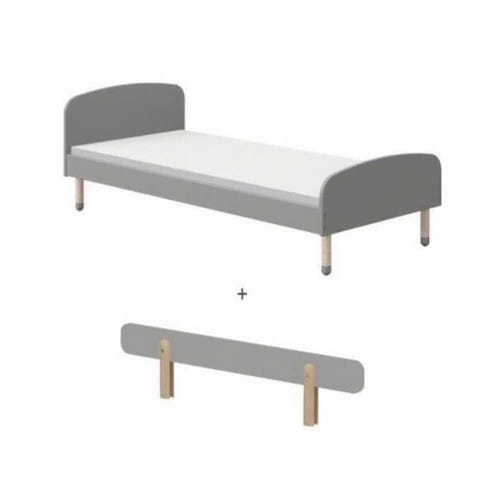 Flexa juniorseng i tre med hvitmalt ramme og sengebunn i trelameller. Sengen har sengehest på langsidene og kortsiden for økt sikkerhet.