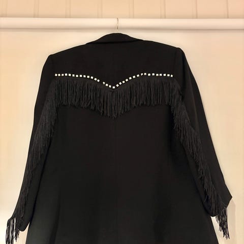 Grå dobbeltspent blazer fra HM, kun brukt 2 ganger så fremstår som ny. Men trenger en runde med strykejernet! Str 38/M. Består av en miks av materialene: lyocell, bomull, ull og lin.