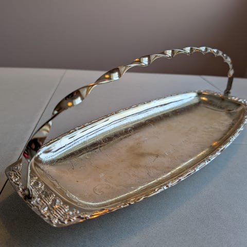 Fat i sølvplett, 39 x 25 cm