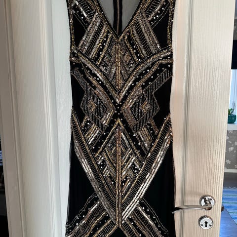 Festkjole i svart med gull detaljer( paljetter) i størrelse 36.