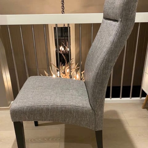 Spisestuestoler i grå tekstil med treben
