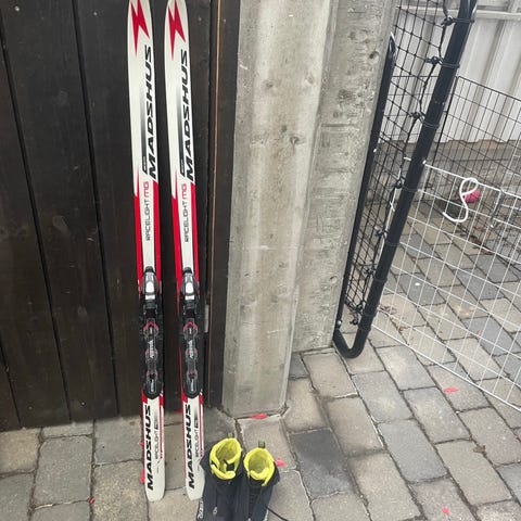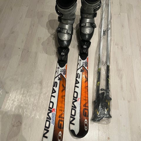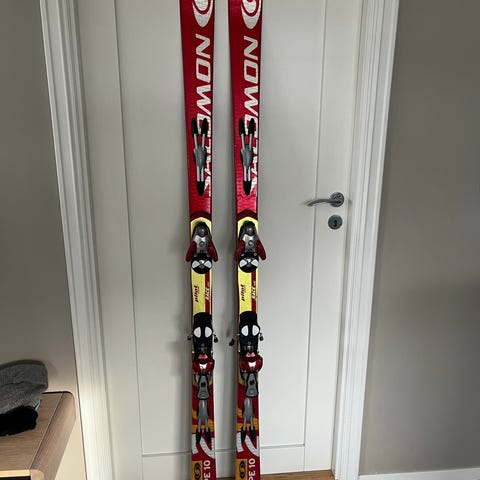 Skiene er stabile og lettkjørte carvingski som passer fint til preparerte bakker. Bindingene fungerer som de skal. Normale bruksmerker etter bruk.