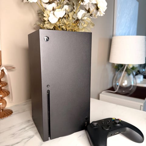 Konsollen har stått stabilt på samme plass og fremstår som meget pen. Xbox Series X leverer opptil 4K-gaming, raske lastetider og stillegående ytelse.