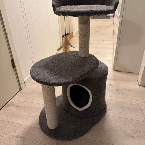 Klatrestativ til katt med hule og liggeskål grå