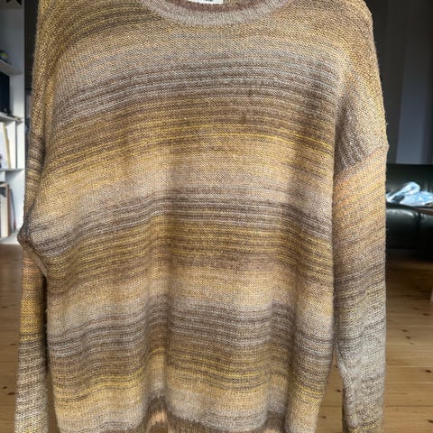 Weekday genser for dame i størrelse S. Strikket i ullblaning med flerfarget mønster/striper. Litt oversized i størrelsen.