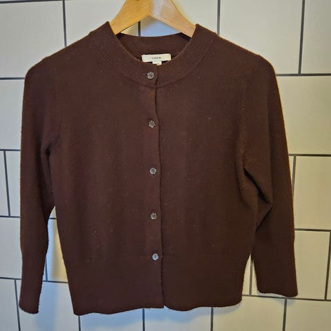 Filippa K cardigan. Pent brukt. Nydelig burgunder farge. 100% merinoull. Ermer 3/4. Passer som et lett lag over topper, skjorter eller kjoler i hverdagen eller på jobb.