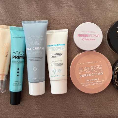 Selger en samlet pakke med diverse sminke- og hårstylingprodukter. Alt er helt nytt og uåpnet.