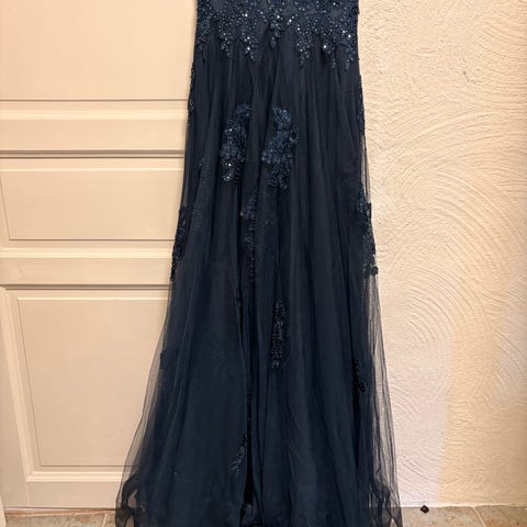 Selskapskjole i blå og beige i størrelse 36