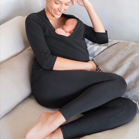Seraphine Bamboo Essentials ammetopp i størrelse M. Langermet topp i svart farge, laget hovedsakelig av viskose. Modellen har diskret åpning for amming i front, med et ekstra lag stoff over bysten. Rund hals og ettersittende passform. Passer til bruk under graviditet og ammeperiode. Litt børstet/nuppete slik som bambus veldig fort blir, men ellers i god stand.