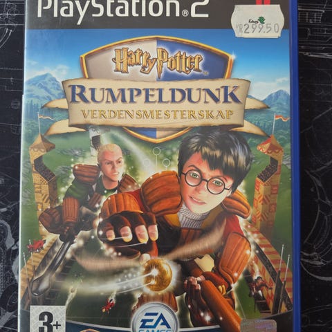 EA Games Harry Potter Rumpeldunk Verdensmesterskap Playstation 2 spill. Norsk utgave av action- og sportsspill satt i Harry Potter-universet, der spilleren deltar i rumpeldunk-verdensmesterskapet. Spillet leveres på DVD-plate i original Playstation 2-eske med omslag. Aldersmerking 3+ ifølge omslaget. Egnet for bruk på Playstation 2-konsoll.