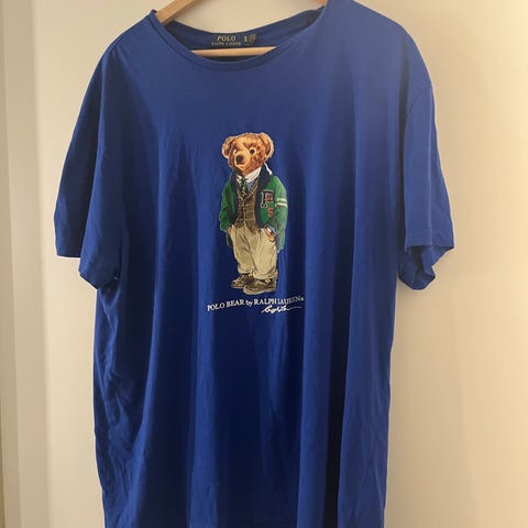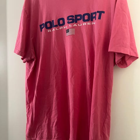 Ralph Lauren Polo Sport t-skjorte for herre i størrelse XL. T-skjorten er grønn og laget av bomull. Fronten har Polo Sport Ralph Lauren-logo med trykk. Klassisk rund hals og korte ermer. Noen flekker som ikke syns så godt like under logoen.