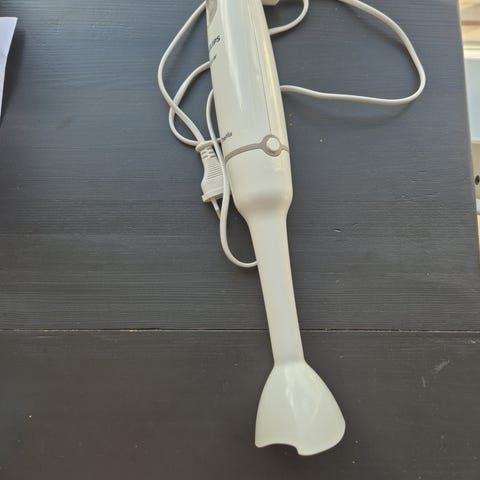 Strømtilkobling via ledning med vanlig støpsel. Effekten er oppgitt til 170 W på typeskiltet. Egner seg til enkle mikseoppgaver som supper, sauser og smoothies. Ikke beregnet for nedsenking av motorhuset i vann ved rengjøring; kun mikserdelen skal vaskes i vann i henhold til merkingen på apparatet.
