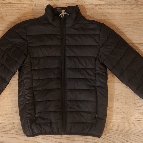 ella & il Kids jakke i blå farge for barn 13-14 år. Jakken er vattert med horisontale sømmer og har glidelås i front. Den har to frontlommer med glidelås og ribbestrikkede avslutninger ved ermer og nederkant. Passer som ytterjakke til hverdagsbruk.