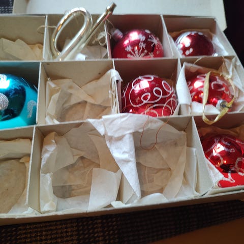6 stk julekuler fra Løiten Lys i diverse farger og fasonger. Kommer med eske til oppbevaring.