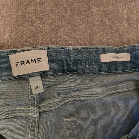FRAME Denim Nouveau Le Mix. Kul jeans som dessverre er blitt for liten til meg. Str. 30, uten stretch. Livvidde ca 2 x 41 cm, lengde ca 88 cm.