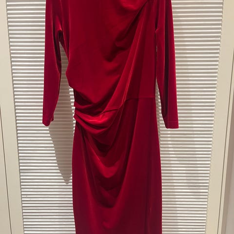 InWear festkjole for dame i størrelse L. Kjolen er brun og laget hovedsakelig av polyester med noe elastan for stretch. Modellen har lange ermer og knelengde, med drapert detalj i midjen. Passer til formelle anledninger og festbruk. Fin passform.