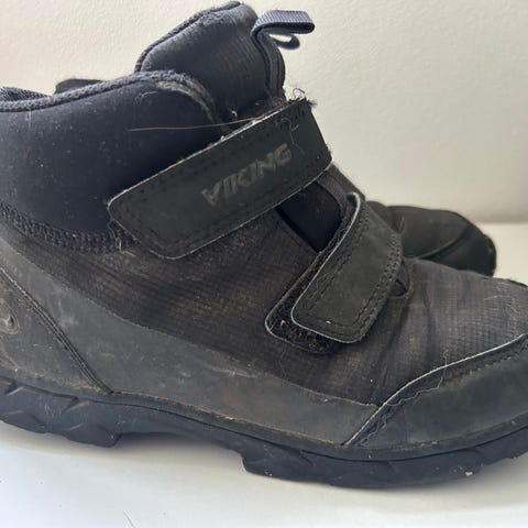 Viking joggesko for barn i størrelse 28. Skoene er mørk blå farge med lyse detaljer. Overdelen ser ut til å være i tekstil/mesh med syntetiske forsterkninger, og skoene har to borrelåsstropper for enkel åpning og lukking. Yttersålen er mønstret for godt grep. Egner seg til hverdagsbruk og lett aktivitet for barn.