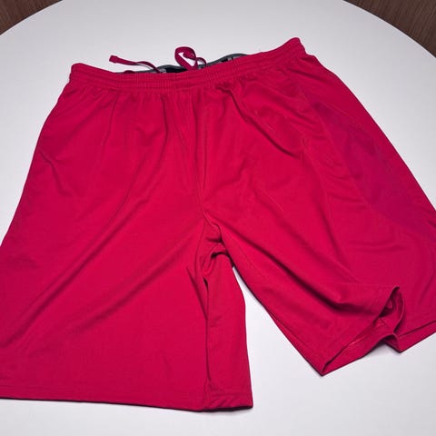 Under Armour treningsshorts for herre i størrelse XL. Shortsen er svart og laget i et lett, teknisk materiale som egner seg for basketball og annen trening. Den har elastisk linning med snøring for justering av passform. Romslig passform og knelengde. Logo på benet og bred linning med Under Armour-tekst øverst. Passer til innendørs og utendørs bruk. Rød shorts i samme merke medfølger.