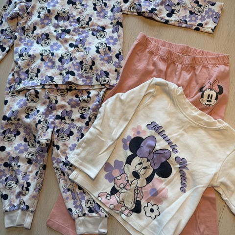 2 stk myke pysjer, lappene er delvis klipt bort da de var ubehagelig for barnet.