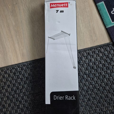 Sammenleggbart tørkestativ i hvitlakkert metall. Stativet har vinger på hver side som kan felles ut for ekstra tørkeplass. Kryssben gjør at det står fritt på gulvet og kan foldes sammen for enkel lagring når det ikke er i bruk. Egner seg til tørking av klær, håndklær og annet tøy innendørs eller på balkong/uteplass etter behov.