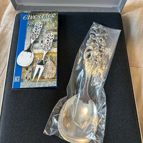 Anretningsskje 830S sølv "Elvesæter" nr. 340 brødrene Lohne 106 gram 21,5 cm