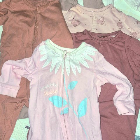 Noen av klærne ble ikke brukt. 1 sett ull (den rosa nederst)