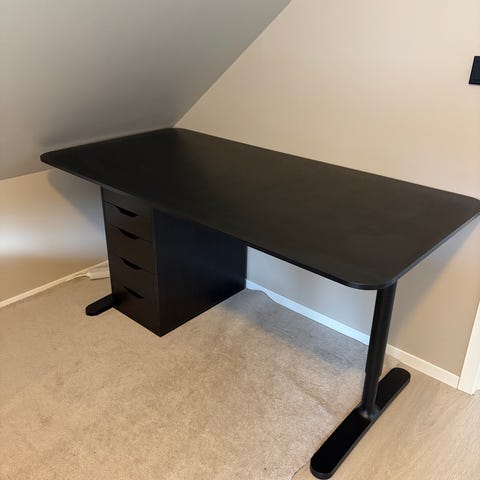 IKEA Thyge Skrivebord, fint brukt. har blitt kuttet fra 160 til 156.5 for å få plass.
