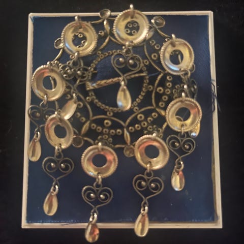 Litt usikker på hva dette er, men ser ut som noe til bunad. Har arvet det… Den er priset til 1500.- og skal være norsk.