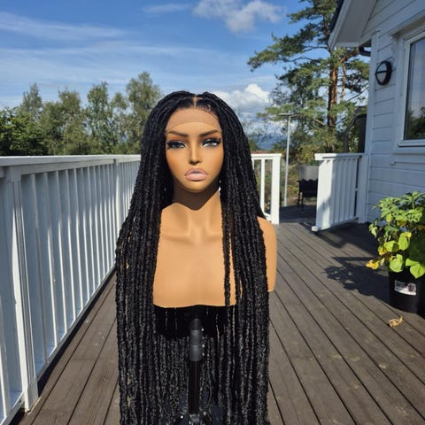 Sia’s Hair Heaven fletteparykk med langt syntetisk hår. Parykken har tynne boksefletter som går over i løse krøller i lengdene. Fronten er laget som en lace-front for mer naturlig hårfeste. Kan brukes til hverdags eller ved spesielle anledninger der man ønsker et flettet uttrykk uten å flette eget hår.