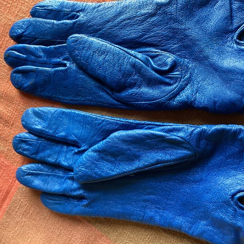 Skinn hansker i størrelse 7. De er smale . Sølv farget