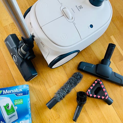 Følger med 3 andre munnstykker og 2 pakker med støvsugerposer😊