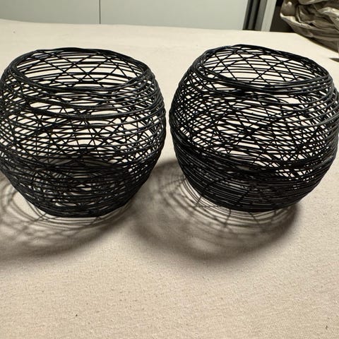 De er laget av vevd gullfarget metall.