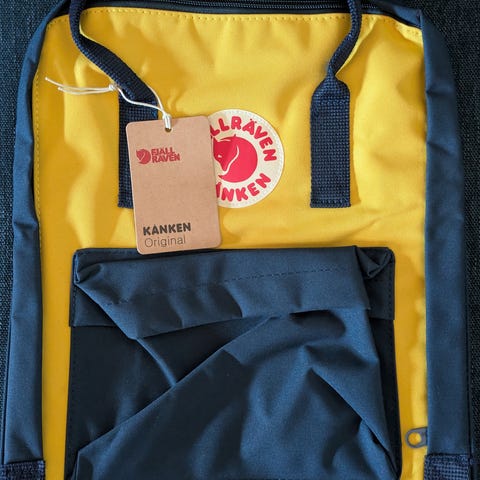 Gul Fjällräven Kånken sekk Original.