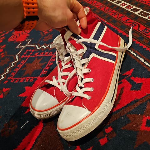 Selger disse pent brukte skoene med ankelstøtte, norsk flagg i 44. Ingen flekker eller lukt.