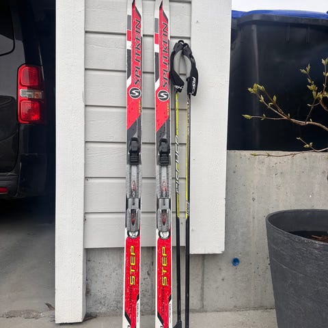 Smørefrie Fischer ski med rosa detaljer (130cm) selges 300,- eller hbo. de er brukt av et barn så noe småriper her og der under skiene er det jo,men mye bruk igjen.
