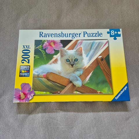 Ravensburger XXL puslespill med motiv av jungeldyr som løver, tigre og leoparder. Puslespillet består av 200 ekstra store brikker og er anbefalt for barn fra 8 år og oppover. Motiv og brikkestørrelse er tilpasset barn i skolealder, og ferdig puslet gir det et fargerikt bilde av ville kattedyr i naturen.