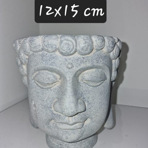Buddhafontene selges. Den er 40cm høy og basen er 30x23cm. Jeg har aldri hatt vann i den, kun hatt den som dekorasjon inne. Følger med ledning med liten pumpe.