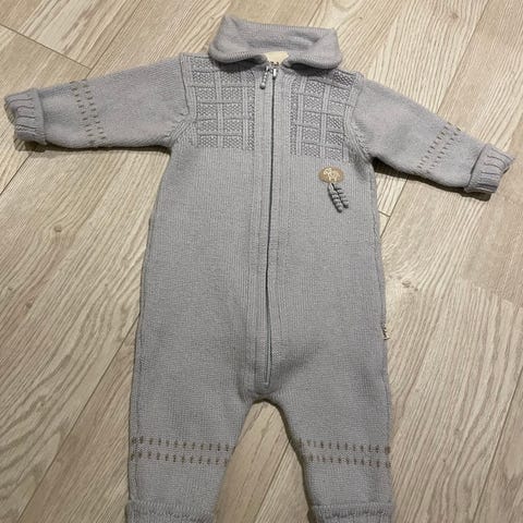 Lillelam ulldress i brunt.Heldress med glidelås foran og krage. Strikket strukturmønster på kropp, ermer og ben, samt ribbekanter ved håndledd og ankler. Passer til baby/barn som varm og myk hverdagsdress eller som mellomlag på kjølige dager.