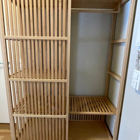 Har garderobestang og 2 hyller.