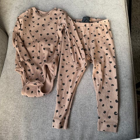 Gullkorn Design Villvette bukse og genser i leopardmønster. Litt brukt, ser ut som ny.