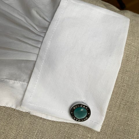 Luksus mansjettknapper i sølv og sort emalje merket Bvlgari 925 i front