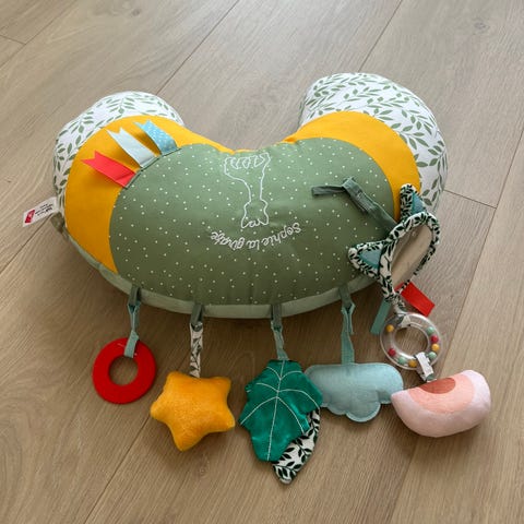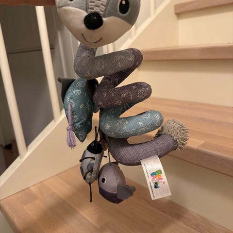Pent brukt aktivitetsspiral / aktivitetsleke med rev fra Moulin Roty. Super til å feste på bilstol / håndtak på barnevogn.