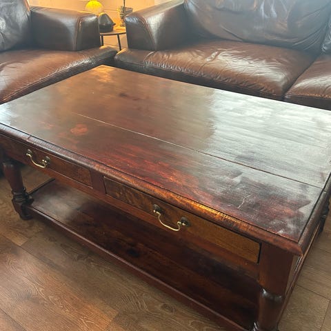 Kjøpt nytt for 4 måneder siden. Veldig fint bord, bytter ut kun fordi jeg har en baby og orker ikke fingermerker.