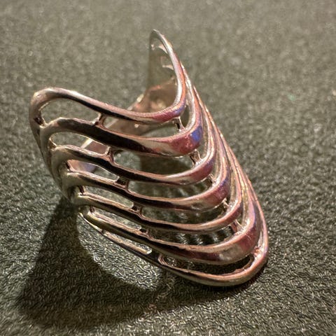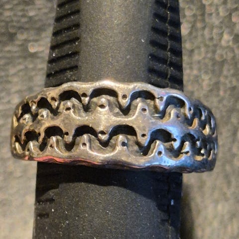 Stilig vintage ring i 925 sølv med skulpturell bølgeformet front.