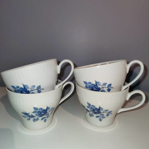 Kaffekopper med blomstermotiv, merke: Lotus. Diameter kopp: 6,5cm og høyde: 7,5cm. Selges samlet. (Se gjerne mine andre annonser også)