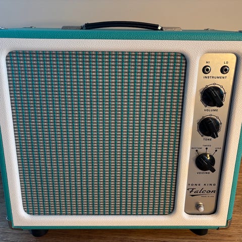 Kanskje verdens fineste gitarforsterker? 20watt klasse A, 12´Celestion, EL 84 rør, likner Vox ac30, men med flere muligheter. Point to point wiring, custom shop kvalitetet. Vurderes solgt da jeg heller mot mindre amper.