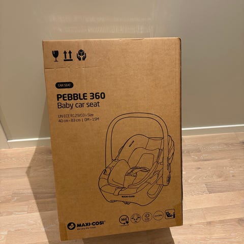 Maxi-Cosi Pebble 360 bilsete til baby er en bakovervendt babybilstol for barn fra 40-83 cm. Setet er i-Size-godkjent og kan brukes fra nyfødt med medfølgende spedbarnsinnlegg.